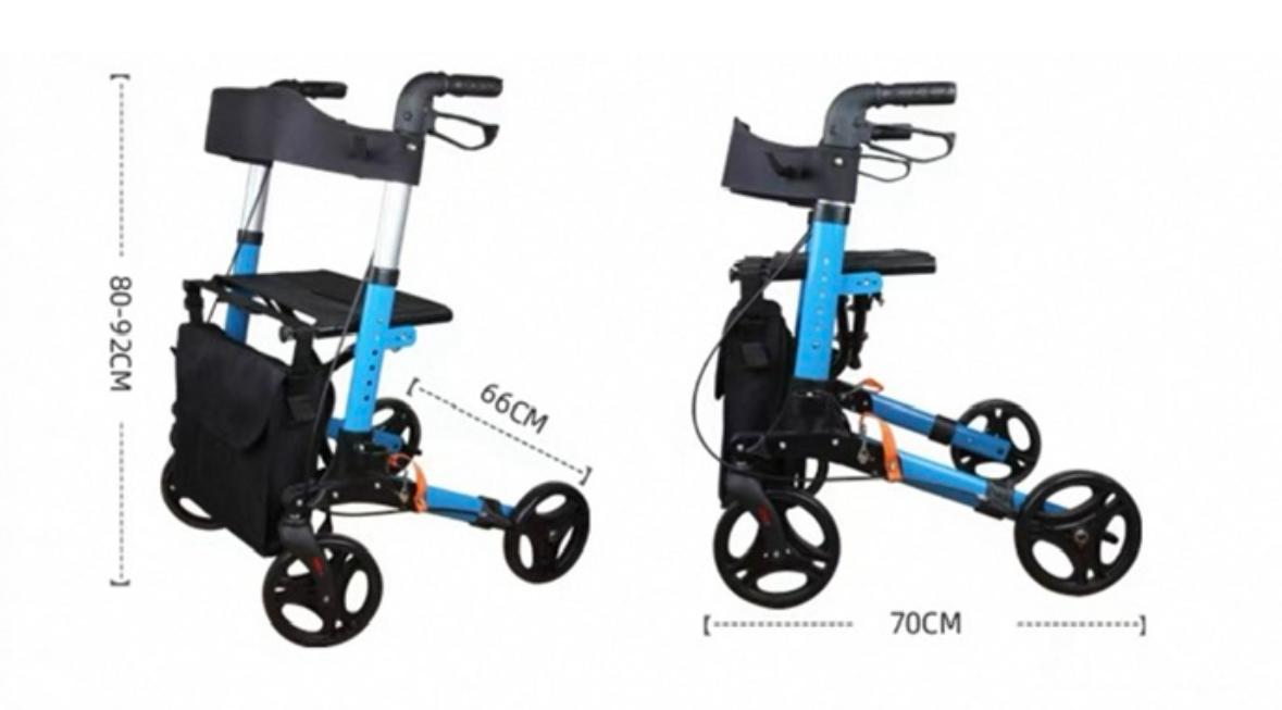 The Rollator is fully foldable, making it easy to store, transport in a car, or carry during travel. This combination of comfort, practicality, and stability helps reduce the risk of falls and enhances independence for elderly users.